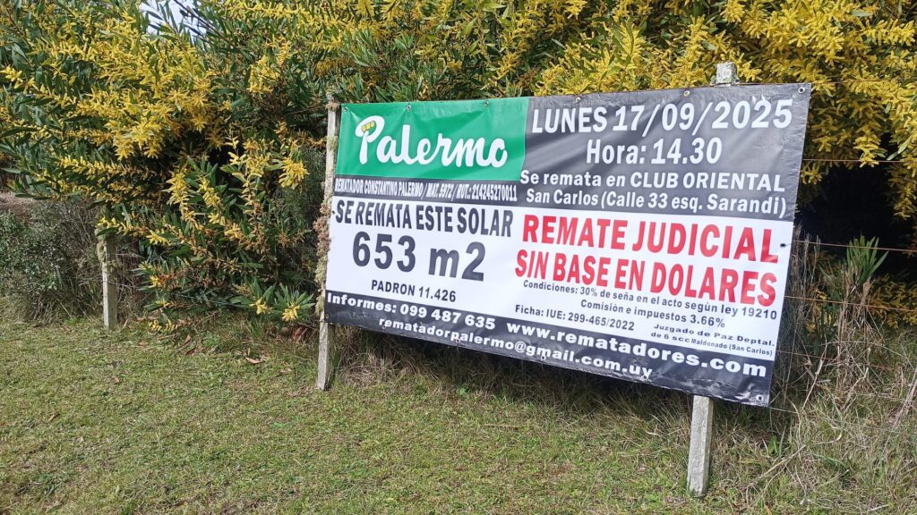 REMATE JUDICIAL SIN BASE EN U$S JUEVES 6 DE NOVIEMBRE 13:30 HORAS En A.N.R.T.C.I. – AV. URUGUAY 826 – MONTEVIDEO ¡GRAN OPORTUNIDAD! CHACRA EN RINCÓN DE MELILLA CON MEJORAS Padrones 141441, 141442 y 174089 Superficie total: 23 hectáreas 5247 metros Seña 30% – Comisión 3,66% – Todo en el acto […]