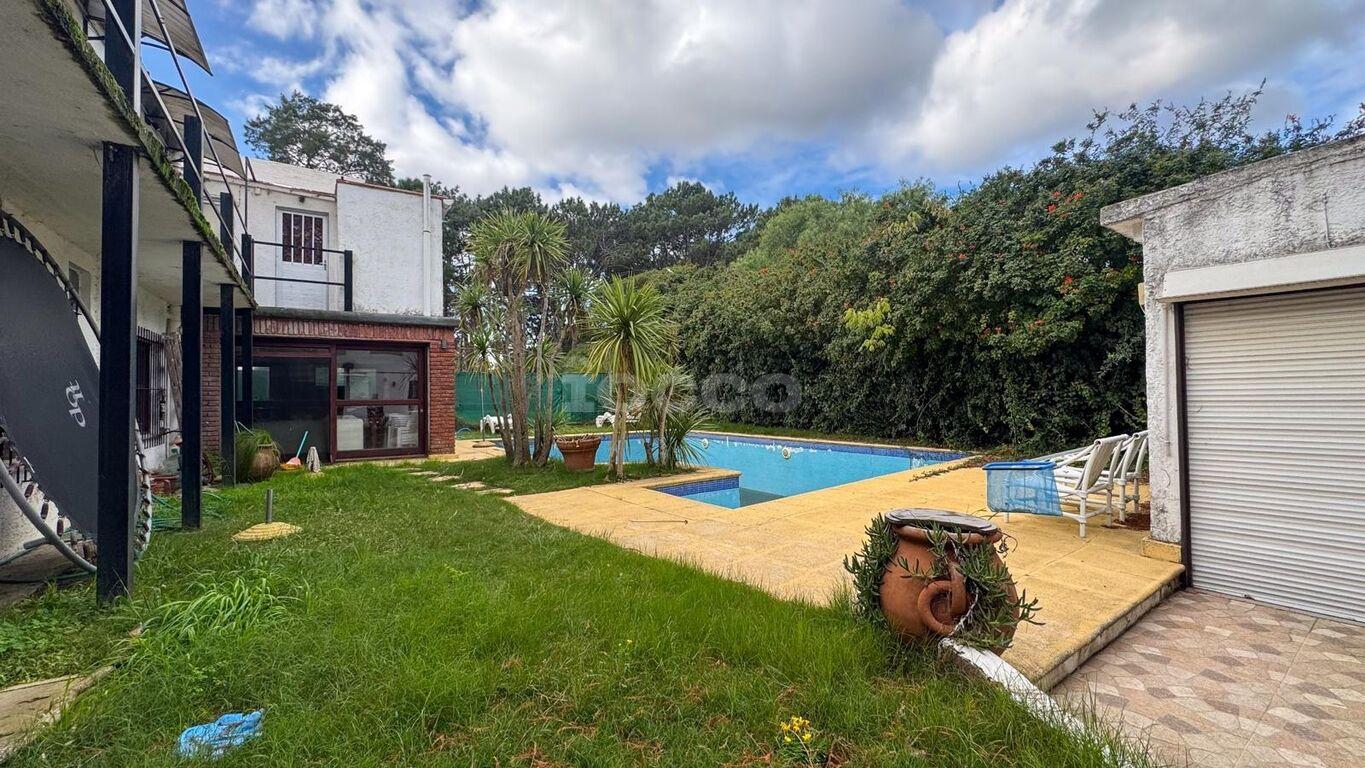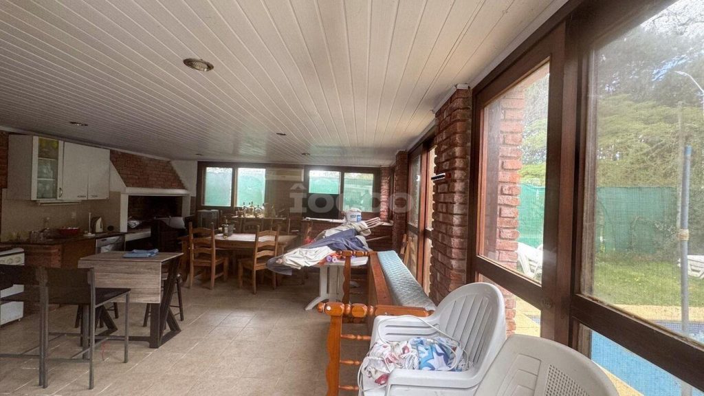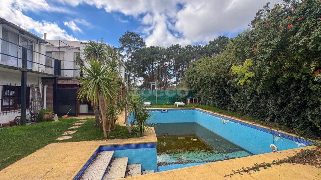 Salida al fondo, piscina y barbacoa.