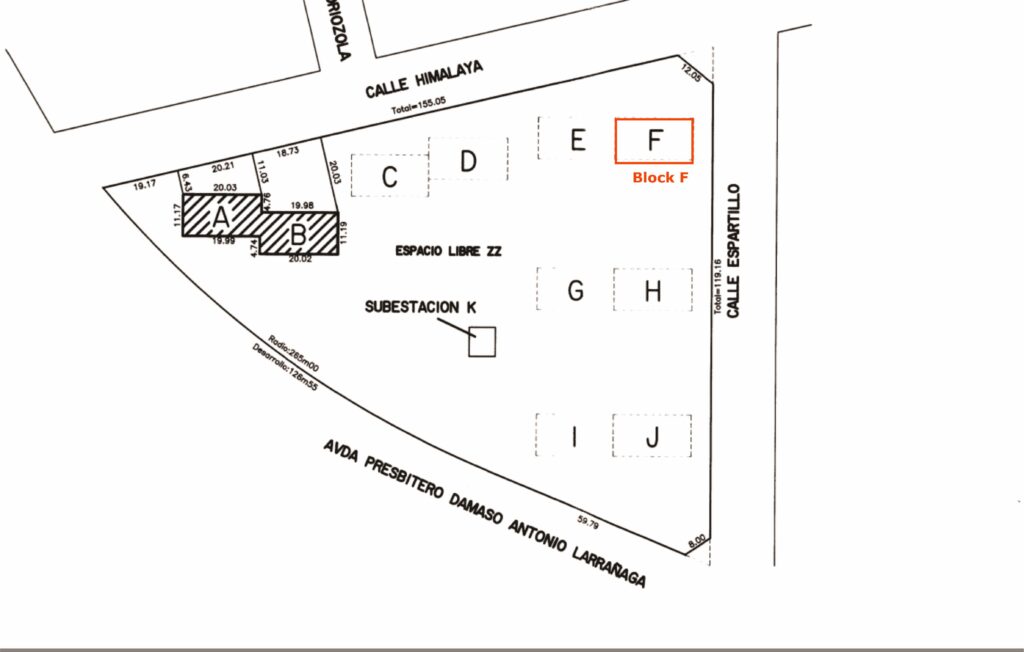 La entrada más próxima al Block F es por la calle Espartillo 3621-3625