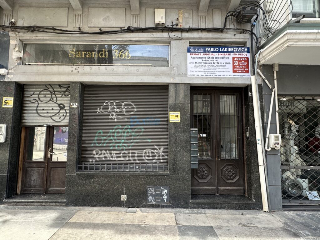 EDICTO: Por disposición del Sr/a. Juez de Paz Departamental Capital de 4º Turno, dictada en autos: “EDIFICIO SARANDI c/ PARMET, MADELINE – EJECUCIÓN DE HIPOTECA” IUE 2-29024/2020, se hace saber que el próximo jueves 30 de octubre de 2025 a las 11:30 horas en el local de la Avenida Uruguay 826, por intermedio del Martillero Pablo Lakierovich, Matrícula Nº 5780, RUT 215178070018, en acto presidido por la Sra. Alguacil de la Sede se procederá a la venta en pública subasta, sin base, al mejor postor y en moneda nacional del siguiente bien inmueble: Unidad de propiedad horizontal cientos seis (106) que forma parte del edificio construido bajo el régimen de propiedad común, incorporado al régimen de propiedad horizontal de la Ley 10.751 por aplicación de las normas de la Ley 14.261 en un terreno ubicado en el departamento de Montevideo, localidad catastral Montevideo, zona urbana, empadronado con el número 3.933 y que según plano de mensura y fraccionamiento horizontal del Ingeniero Agrimensor Ricardo J. Lagos, inscripto en la Dirección General de Catastro Nacional el 15 de noviembre de 2007 con el número 40688, se compone de una superficie de 355 metros con 19 decímetros, con 10 metros 36 centímetros de frente al Noroeste a la calle Sarandí, número de puerta 364. La unidad 106 está empadronada individualmente con el número 3933/106 que según el plano referido se ubica en el primer piso a cota vertical más 4 metros 82 centímetros, posee una superficie de 44 metros 42 decímetros y le corresponden el uso exclusivo del Patio E1.- SE PREVIENE: 1º) Que el mejor postor deberá consignar el 30% de su oferta en carácter de seña en el acto de serle aceptada la postura, así como la Comisión del Rematador más IVA, o sea el 3,66% del precio del remate. Dicho pago deberá realizarse en el acto, en moneda nacional, y si el precio de la subasta supera 1.000.000 UI deberá darse cumplimiento a lo dispuesto por la Ley 19.210 en la redacción dada por la Ley 19.889, modificativas y concordantes. En caso de abonar con transferencia electrónica, el mejor postor deberá tomar los recaudos necesarios ante la sucursal de su banco a efectos de tener disponibles los montos necesarios al momento de la realización de la subasta. 2º) Que se deberá depositar el saldo del precio de la almoneda en la cuenta abierta bajo el rubro de autos y a la Orden de la Sede en el plazo de 20 días corridos contados a partir del día hábil siguiente al de la notificación del auto aprobatorio del remate que no se interrumpirá por las ferias judiciales ni por la semana de turismo, y cumplir lo dispuesto por el art. 387.7 del CGP, bajo apercibimiento legal. La integración deberá realizarse y documentarse de acuerdo a la Ley 19.210, modificativas y decretos reglamentarios. 3º) Que serán de cargo del Comprador los gastos de escrituración, honorarios, impuestos, certificados y demás que la Ley pone a su cargo. 4º) Que será de cargo del expediente la Comisión de Venta del Rematador más IVA o sea el 1,22% sobre el precio de remate, así como los gastos de remate. 5º) Que se desconoce el estado ocupacional y tributario del bien, así como si existen deudas con BPS por construcciones. 6º) Que existen deudas de contribución inmobiliaria e impuesto de primaria, las cuales son imputables al precio por ser necesarios para la escrituración del bien. Los tributos de ITP e IRPF si correspondieren se reintegrarán luego de otorgada la respectiva escritura. 7º) Que el bien se remata en las condiciones que surgen del expediente, la documentación agregada y la información registral. El bien se saca a remate con testimonio por exhibición de la documentación y antecedentes dominiales, los que se encuentra a disposición de los interesados en OFGECEN sito en 25 de mayo 500 de ésta ciudad. Y a los efectos legales se hace esta publicación. Montevideo, 07 de octubre de 2025. -GRISEL HERCILIA CUBAS PUENTES, Actuario de Jdos. de Paz