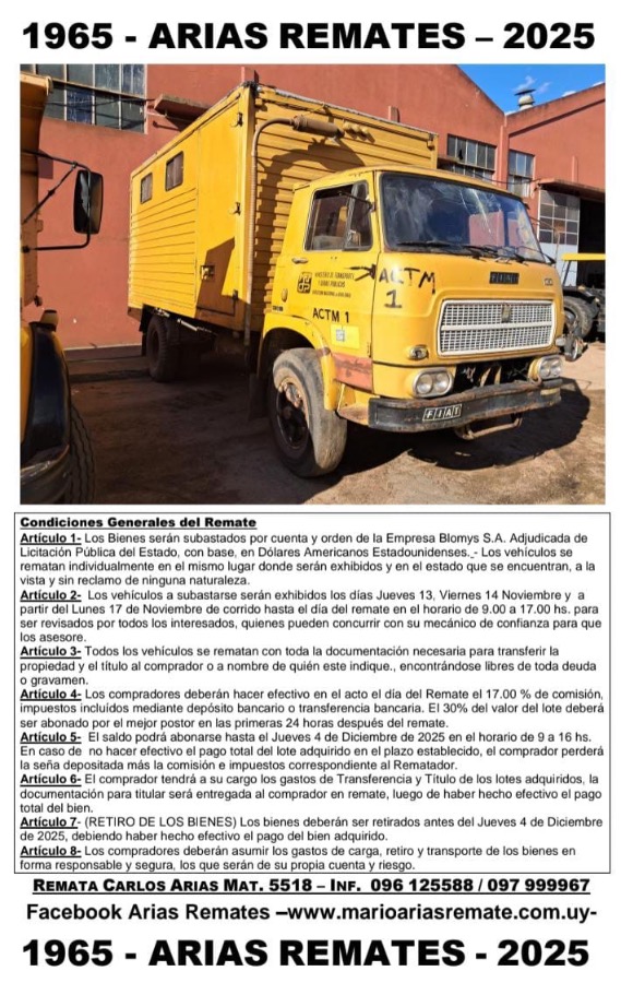 Artículo 1- Todos los Bienes serán subastados en Avda. Garzón 2076 (Montevideo), por cuenta y