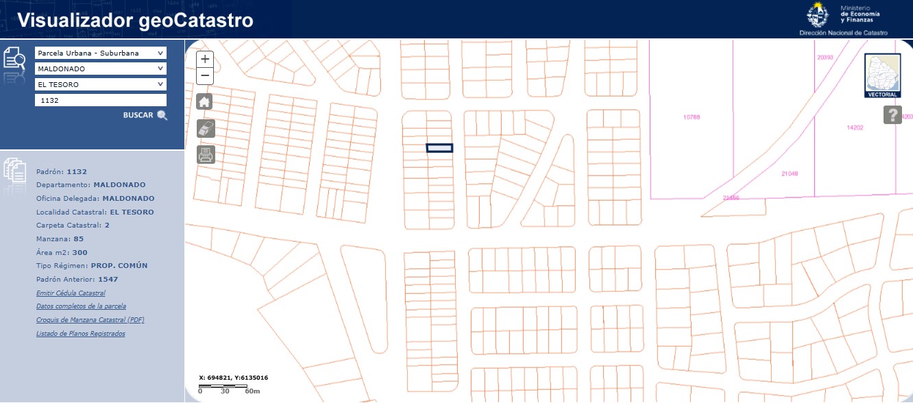 EDICTO: Por disposición de la Sra. JUEZ DE PAZ DEPARTAMENTAL DE 1er. TURNO de MALDONADO, dictado en autos caratulados “INTENDENCIA DEPARTAMENTAL DE MALDONADO C/GARCIA CABANAS Manuel y Otros, VIA DE APREMIO, IUE 292-722/2022”, se hace saber que el próximo 18 de Septiembre de 2025, a la Hora 14:30, en el Local Casa Rosada, ubicado en la ca le José Dodera No. 869, entre las ca les Florida e Ituzaingó de la ciudad de Maldonado, por intermedio del martillero Gustavo ALVAREZ ALZUGARAY, matrícula 5722, RUT 100356560011, asistido por la Alguacil del Juzgado, se procederá al Remate Público SIN BASE y en DOLARES USA, del siguiente bien Inmueble: solar de terreno baldío ubicado en la localidad El Tesoro, departamento de Maldonado, zona urbana, empadronado con el número Mil ciento treinta y dos (1132), que según plano del Agrimensor Carlos A. Mac Coll, de Octubre de 1945, inscripto en la Oficina Departamental de Catastro de Maldonado con el número 61, el 25 de Marzo de 1946, se señala como solar 11 de la manzana 255, tiene un área de TRESCIENTOS METROS (300 m), y se deslinda así: 10 metros al Este de frente a ca le No.4, 30 metros al Sur lindando con solar 12, 10 metros al Oeste lindando con solar 30 y 30 metros al Norte lindando con el Solar 10, todos solares de la misma manzana y plano. SE PREVIENE: 1) Que el mejor postor deberá consignar en carácter de seña el 30% de su oferta a cuenta del precio final, en el acto de serle aceptada la postura y en dólares usa. 2) Serán de cargo del comprador los gastos de escrituración, honorarios certificados y la comisión del Rematador e Impuestos, o sea el 3,66% del precio del remate, y de cargo del expediente por comisión e Impuestos el 2,22% del precio del remate. 3) El mejor postor deberá depositar el saldo en un plazo de 20 días corridos contados a partir del día hábil siguiente al de la notificación del auto aprobatorio del remate, que no se interrumpirá por las ferias judiciales ni por la semana de turismo. 4) Los antecedentes dominiales y demás documentación se encuentran a disposición de los interesados en la Sede del Juzgado, informándose que el estudio de títulos se realizó en base a testimonios por exhibición. 5) Se desconoce el estado ocupacional del bien. 6) Que se podrá deducirse del precio del Remate por parte del Comprador, el monto de Contribución Inmobiliaria que se adeude al día del Remate y el Impuesto a las Trasmisiones Patrimoniales (ITP). 7) Deberá tener presente el mejor postor el cual deberá abonar la seña y el saldo de precio, con letra de cambio, cheque certificado o transferencia electrónica de Bancos de Plaza, atento a las disposiciones de la Ley 19210, 19478, 19732, sus modificaciones y su Decreto Reglamentario, en caso de que el monto supere la cantidad de1:000.000 de UI. (Unidades Indexadas). 8) Y a los efectos legales se realiza una Publicación en el Diario Oficial y Diario Local y en la página del Poder Judicial. Maldonado, de Agosto de 2025.