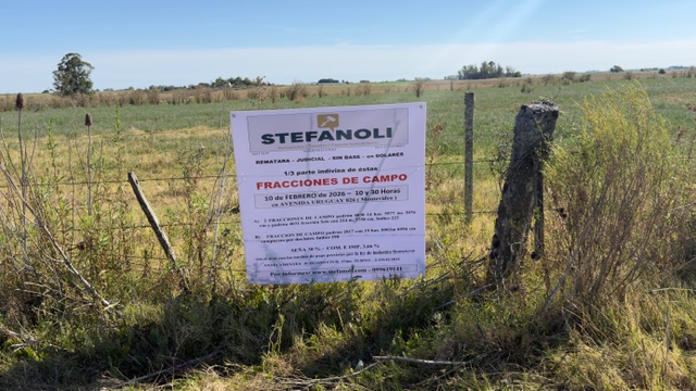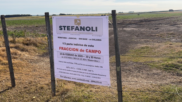 EDICTO: Por disposición del Sr/a. Juez Letrado Civil de 17º Turno, dictada en autos: “COPAGRAN – COOPERATIVA AGRARIA NACIONAL C/ CABRERA,JULIO JUICIO EJECUTIVO CABRERA, JULIO Y OTROS.- PROCESO EJECUTIVO” IUE 2-29142/2011, se hace saber que el 10 de febrero del 2026 a las 10 y 30 horas en Avenida Uruguay 826, Montevideo, se procederá por intermedio del Rematador MARIO STEFANOLI Mat. 4219 Ruc 211743790012 y presidido por la Sra. Alguacil del Juzgado al remate, sin base, al mejor postor y en dólares americanos los siguientes bienes inmuebles: I) 1/6 de Fracción de campo y demás mejoras que le acceden, empadronada con el número seis mil trescientos noventa y seis (6396) antes padrón en mayor área número 2.818, se ubica en la sexta sección judicial y catastral del departamento de Soriano, zona rural, y según el plano de mensura y fraccionamiento del Agrimensor Joaquín W. Campelo, inscripto en la Dirección General de Catastro con el número 500 el 17 de mayo de 1948, consta de una superficie total de ciento treinta y dos hectáreas cuatro mil seiscientos cincuenta y seis metros (132 has. 4656 metros), y se compone de dos fracciones, la señalada como fracción “uno” consta de una superficie de ciento diecinueve hectáreas ocho mil ochocientos noventa y siete metros cuatro mil quinientos cuarenta y ocho centímetros (119 has. 8897 m.4548 cm), con 737 metros con 40 centímetros al Suroeste de frente a la Carretera Nacional a Mercedes; y la señalada con como fracción “cinco” consta de una superficie de doce hectáreas cinco mil setecientos cincuenta y ocho metros cinco mil ciento noventa y seis centímetros (12 has. 5758 m 5196 cm), con 428 metros al Noroeste de frente a Camino Vecinal. y 1/3 de las siguientes fracciones: II) 1/3 de Dos fracciones de campo con las mejoras que contienen, ubicadas en la sexta sección judicial y catastral del departamento de Soriano, zona rural, empadronadas cada una con los números cuatro mil treinta (4030) y cuatro mil treinta y uno (4031) y según el plano del Agrimensor Joaquín W Campelo de mayo de 1942, inscripto en la Oficina Técnica de Empadronamiento de Soriano el 11 de junio de 1942 con el número 67, se indican respectivamente como fracciones “A” y “SEIS”, con las siguientes superficies y linderos: a) FRACCIÓN “A” consta de una superficie de catorce hectáreas cinco mil quinientos setenta y siete metros tres mil setenta y seis centímetros (14 has. 5577 m 3076 cm) lindando 3 líneas quebradas de 54 metros 90 centímetros, 181 metros 40 centímetros y 251 metros 10 centímetros de frente al Este a Camino Vecinal, 256 metros 80 centímetros al Norte lindando con Ramon V. Corujo, 381 metros 7 centímetros al Oeste lindando con fracción “B” y 530 metros 10 centímetros al Sur con Magdalena Wlisseche de Duhalde. b) FRACCIÓN “SEIS” consta de una superficie de doscientos veinticuatro metros cinco mil setecientos cincuenta y ocho centímetros (224m. 5758cm) que lindan, 39 metros 80 centímetros al Noreste frente a Camino Vecinal, 23 metros 30 centímetros al Oeste con la vía del ferrocarril y 26 metros 10 centímetros al Sur con Magdalena Elisseche de Duhalde. III) 1/3 de Fracción de campo ubicado en proximidades de José Enrique Rodó, sexta sección judicial y catastral del departamento de Soriano, zona rural, empadronado con el número dos mil ochocientos diecisiete (2817), y según plano de mensura y fraccionamiento del Agrimensor Joaquín W. Campelo, de enero de 1955 inscripto en la Oficina departamental de Catastro de Soriano con el número 492 el 10 de marzo de 1955, consta de una superficie de diecinueve hectáreas ocho mil novecientos tres metros ocho mil quinientos noventa y seis metros (19 has 8903m 8596 cm) y se compone de dos lotes, cuyas áreas y deslindes son los siguientes: a) lote designado con la LETRA “D” con una superficie de diecinueve hectáreas tres mil novecientos cincuenta y tres metros tres mil quinientos noventa y seis centímetros (19 has 3953 m 3596 cm), lindando 436 metros 50 centímetros al Norte con parte de la propiedad de sucesión de Ramón V.Corujo, 381 metros 70 centímetros al Este lindando con Clotildo Francisco Reyes, 700 metros 50 centímetros al Sur lindando con Pedro M Cabrera y sucesión Ramon Duhalde y al Oeste una línea de Norte a Sur de desarrollo de 234 metros 40 centímetros lindando con la fracción “E” y otra línea desde el extremo de la anterior hacia el Oeste, de 189 metros 70 centímetros de desarrollo lindando con las fracciones “F” y “G”. b) lote designado con la LETRA “G” con una superficie de 4950m 5000 cm, frente al Oeste 10 metros a calle, lindando 497 metros 90 centímetros al Norte con la fracción F, 11 metros 80 centímetros al Sureste lindando con la fracción “F” , 11 metros 80 centímetros al Sureste lindando con fracción “D” y 492 metros 20 centímetros al sur lindando con Sección de Ramon Duhalde, todas fracciones del mismo plano IV) 1/3 de Fracción de campo y sus mejoras, ubicada en el departamento de Soriano, quinta localidad judicial y catastral, zona rural, empadronado con el número tres mil cuatrocientos cuarenta y cuatro (3444), el que según plano de mensura del Agrimensor Joaquín W. Campelo de marzo de 1940 inscripto en la Dirección General de Avalúos con el número 111 el 16 de marzo de 1940, se señala como fracción “B” y tiene una superficie de noventa y seis hectáreas siete mil quinientos setenta y ocho metros y seis mil setecientos dieciséis centímetros (96 has 7578 m 6716 cm) que se deslinda así: 563 metros al Norte lindando con la fracción “A”, 1095 metros 40 centímetros al Este y 425 metros 60 centímetros al Sureste ambos de frente a camino Vecinal a Anta Catalina por medio con doña Tomasa Nogueira, 1247 metros 70 centímetros al Suroeste lindando con sucesión de Paulina Nogueira y al Noroeste 671 metros 50 centímetros lindando con Joaquín Ibarburo. V) 1/3 de Fracci