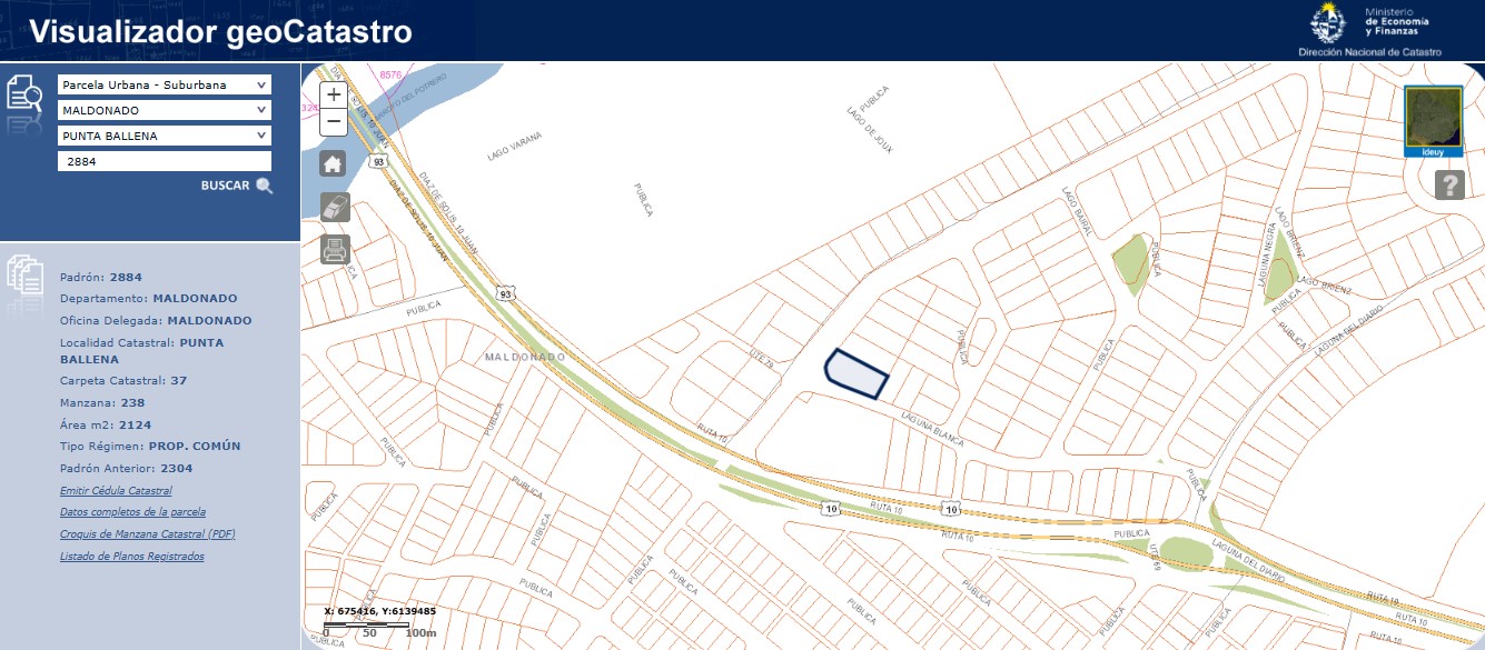 EDICTO: Por disposición del Sr. JUEZ LETRADO DE PRIMERA INSTANCIA DE 5TO. TURNO de MALDONADO, dictado en autos caratulados “IDM c/PLIAUZER RALLIS” “JUICIO EJECUTIVO, IUE 289- 109/2020”, se hace saber que el próximo Jueves 07 de Agosto de 2025, a la hora 14:00, en el Local Casa Rosada, ubicado en la calle José Dodera No. 869, entre Florida e Ituzaingó de la ciudad de Maldonado, por intermedio del martillero Gustavo ALVAREZ ALZUGARAY, matrícula 5722, RUT 100356560011, asistido por la Alguacil del Juzgado, se procederá al Remate Público SIN BASE y en DOLARES USA: del siguiente bien Inmueble: Solar de Terreno baldío, sito en la Localidad catastral Punta Ballena, departamento de Maldonado, zona urbana, empadronado con el número Dos mil ochocientos ochenta y cuatro (2.884), señalado con el número 1, de la manzana C2, en el plano de mensura y fraccionamiento del Agrimensor Eduardo de los Campos, de Agosto de 1980, inscripto en la Oficina Departamental de Catastro de Maldonado con el número 255 el 30 de Octubre de 1980, tiene una superficie de Dos mil ciento veintitrés metros setenta y ocho decímetros (2.123 metros, 78 decímetros), y se deslinda así: 53 metros 96 centímetros al Suroeste de frente a Calle Pública; 17 metros 45 centímetros al Noroeste de Frente a Avenida Costanera, por ser esquina, uniendo ambos frentes ochava curva de 30 metros 05 centímetros de desarrollo, 68 metros 26 centímetros al Noreste lindando con solar 2 y 25 metros 37 centímetros al Sureste lindando con parte del solar 14, todos de la misma manzana y plano. SE PREVIENE: 1) Que el mejor postor deberá consignar en carácter de seña el 30% de su oferta a cuenta del precio final, en el acto de serle aceptada la postura y en dólares usa. 2) Serán de cargo del comprador los gastos de escrituración, honorarios certificados y la comisión del Rematador e Impuestos, o sea el 3,66% del precio del remate, y de cargo del expediente por comisión e Impuestos el 2,22% del precio del remate. 3) El mejor postor deberá depositar el saldo en un plazo de 20 días corridos contados a partir del día hábil siguiente al de la notificación del auto aprobatorio del remate, que no se interrumpirá por las ferias judiciales ni por la semana de turismo. 4) El Remate se efectúa en las condiciones que resultan del expediente, documentación, titulación e información registral adjunta. 5) Se desconoce el estado de ocupación del bien. 6) Deberá tener presente el mejor postor el cual deberá abonar la seña y el saldo de precio, con letra de cambio, cheque certificado o transferencia electrónica de Bancos de Plaza, atento a las disposiciones de la Ley 19210, 19478, 19732, sus modificaciones y su Decreto Reglamentario, en caso de que el monto supere la cantidad de1:000.000 de UI. (Unidades Indexadas). 8) Se aplicará el artículo 387.2 literal h “in fine” del C.G.P. a efectos de imputación de los rubros como parte del precio del Remate. 9) Y a los efectos legales se realiza una Publicación en el Diario Oficial y Diario Local y en la página del Poder Judicial.