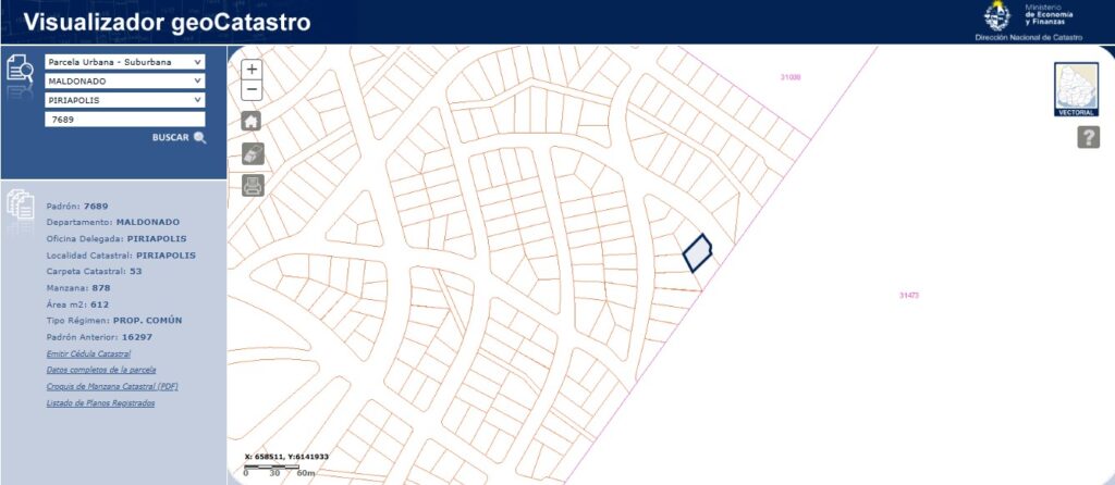 EDICTO: Por disposición del Sr/a. Juez de Paz Departamental de Maldonado de 3° Turno, dictada en autos: “INTENDENCIA DEPARTAMENTAL DE MALDONADO c/ TALIO MESSINA, CARMELO y otro – JUICIO EJECUTIVO TRIBUTARIO” IUE 2- 66339/2022, se hace saber que el próximo Lunes 21 de Julio de 2025, a la Hora 14:30, en Local Casa Rosada, ubicado en la Calle Dodera No. 869 entre Florida e Ituzaingó de la ciudad de Maldonado, por intermedio del martillero Gustavo ALVAREZ ALZUGARAY, matrícula 5722, RUT 100356560011, asistido por la Alguacil del Juzgado, se procederá al Remate Público SIN BASE y en DOLARES USA: del siguiente bien Inmueble: Solar de terreno baldío, sito en la Localidad catastral Piriápolis, departamento de Maldonado, empadronado con el número Siete mil seiscientos ochenta y nueve (7689), el que según plano de mensura y fraccionamiento del Agrimensor Danilo Rostan de Junio de 1971, inscripto en la Oficina Departamental de Catastro de Maldonado el 13 de Agosto de 1971, con el número 5909, se señala como solar 11 de la manzana 39, tiene una superficie de SEISCIENTOS DOCE METROS QUINCE DECIMETROS (612 metros 15 decímetros), que se deslinda así: al Noreste, línea curva de 8 metros 4 centímetros la primera, 8 metros 4 centímetros la segunda, 6 metros 25 centímetros la tercera, frente a calle diecisiete, al Sureste 27 metros 36 centímetros lindando con solar 12, al Suroeste 21 metros 2 centímetros con parte de los solares 6 y 7, y al Noroeste 29 metros 89 centímetros lindando con solar 10. SE PREVIENE: 1) Que el mejor postor deberá consignar en carácter de seña el 30% de su oferta a cuenta del precio final, en el acto de serle aceptada la postura y en dólares usa. 2) Serán de cargo del comprador los gastos de escrituración, honorarios certificados y la comisión del Rematador e Impuestos, o sea el 3,66% del precio del remate, y de cargo del expediente por comisión e Impuestos el 2,22% del precio del remate. 3) El mejor postor deberá depositar el saldo en un plazo de 20 días corridos contados a partir del día hábil siguiente al de la notificación del auto aprobatorio del remate, que no se interrumpirá por las ferias judiciales ni por la semana de turismo. 4) Se remata en las condiciones que surgen del expediente, de la documentación y titulación agregadas y la información registral adjunta. 5) Se desconoce el estado ocupacional del bien. 6) Deberá tener presente el mejor postor el cual deberá abonar la seña y el saldo de precio, con letra de cambio, cheque certificado o transferencia electrónica de Bancos de Plaza, atento a las disposiciones de la Ley 19210, 19478, 19732, sus modificaciones y su Decreto Reglamentario, en caso de que el monto supere la cantidad de1:000.000 de UI. (Unidades Indexadas). 8) Se aplicará el artículo 387.2 literal h “in fine” del C.G.P. a efectos de imputación de los rubros como parte del precio del Remate. 9) Y a los efectos legales se realiza una Publicación en el Diario Oficial, Diario Local y en la página del Poder Judicial. Maldonado, 18 de junio de 2025 – MICAELA JUDITH BONILLA NUÑEZ, Administrativo IV Colaboración Cargo: Actuario Adjunto.
