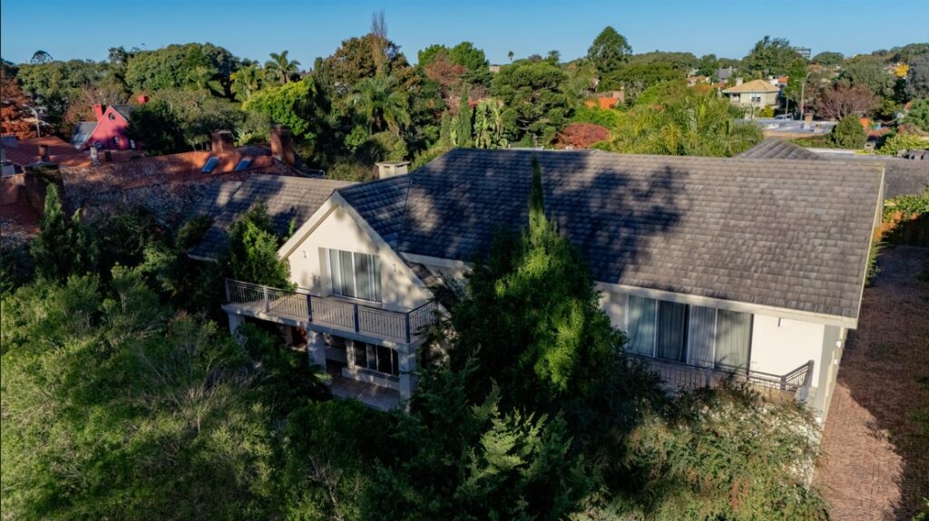 La propiedad se encuentra rodeada por un amplio parque arbolado, con jardín al