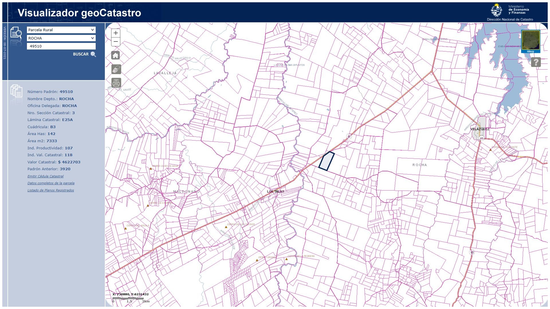 desarrollo. Corresponde al Padrón N.º 49.510 y dispone de construcciones,