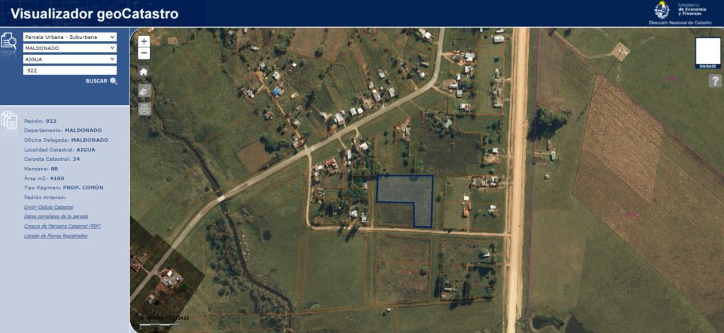GRAN TERRENO EN AIGUÁ Superficie 4106 m² Muy buena ubicación calle Manuel Dutra casi Ruta 39 Padrón 922 SEÑA 30% – COMISIÓN E IMPUESTOS AL COMPRADOR 3,66%