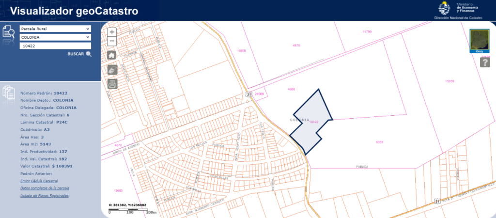 Padrón 10422, Sup. 3 has 5143 m². Edificado aprox. 8.000 m²