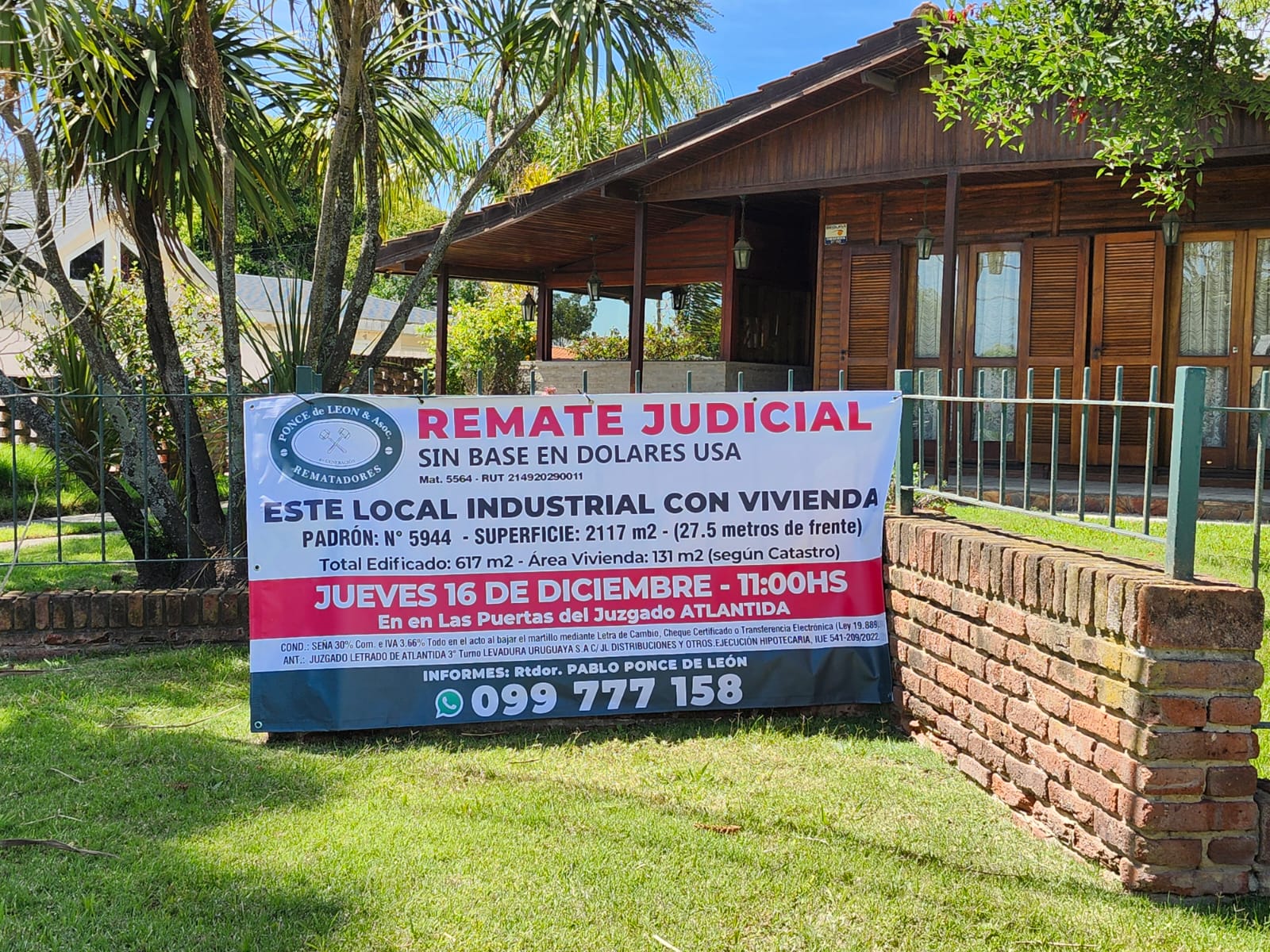 EDICTO: Por disposición del Sr/a. Juez Letrado de Atlántida de 3° Turno, dictada en autos: “LEVADURA URUGUAYA S.A C/ JL DISTRIBUCIONES Y OTROS.EJECUCIÓN HIPOTECARIA” IUE 541-209/2022, se hace saber que el próximo 16 de diciembre de 2025 a partir de la hora 11:00 en las puertas del juzgado por intermedio del Rematador Pablo Ponce de León, Mat. 5564, RUT 21.492029.0011 y presidido por la Sra. Aguacil de la Sede, se procederá al remate sin base, en dólares americanos y al mejor postor del siguiente bien inmueble: Un solar con las mejoras que le acceden, ubicado en la localidad catastral de Atlántida, departamento de Canelones, empadronado con el N° 5944 (antes padrón 4253 y parte del 4254) el que según plano de mensura y reparcelamiento del Agrimensor Esteban Xavier Avila de mayo de 1996 inscripto en la Dirección General de Catastro Nacional Oficina Departamental de Catastro de Pando con el N° 8022 el 29 de noviembre de 1996, se señala con el N° 2, tiene una superficie de 2116 m 80 dms y se deslinda así: 27,52 m de frente al norte a la avenida N° 3 entre la carretera Atlántida – Montevideo (Ruta 11) y la calle N° 13, distando su punto medio 64,69 m de la esquina formada con esta última; al noreste línea quebrada compuesta por tres tramos rectos que a partir del límite anterior miden y corren: el primero de 30m de norte a sur y el segundo de 15,52 m de oeste a este, lindando ambos con el solar 1 y el tercero de 30 m de norte a sur lindando con parte del padrón 4255; 43,04 m al sur lindando con los padrones 4266 y 4267; y 60 m al oeste lindando con los padrones 4270 y 4252. SE PREVIENE: 1º Que el mejor postor deberá consignar el 30% de su oferta, en carácter de seña, así como la comisión del rematador del 3.66%. Dichos pagos deberán realizarse en el acto, y si el precio total de lo rematado superare las U.I. 1.000.000, se hará efectivo mediante LETRA DE CAMBIO, CHEQUE CERTIFICADO o TRANSFERENCIA ELECTRÓNICA de una entidad bancaria de plaza, cumpliendo así con la normativa vigente (ley N° 19.889). 2º Que será de cargo del expediente el pago de la comisión e IVA de venta al rematador del 1.22% 3º Que existe en relación al padrón actual 5944, resultado de la actual fusión de los padrones 4253 y 4254, hipoteca con derecho de preferencia por el acreedor hipotecario BHU y que la titulación original del padrón anterior 4253 se encuentra para su estudio en la referida Institución bancaria. 4° Que existen deudas con la Intendencia Municipal de Canelones, (Contribución Inmobiliaria) y con DGI (Impuesto de Primaria) así como deudas frente al Organismo Público de OSE 5° Que solo podrán ser imputados al precio los tributos necesarios para la escrituración hasta el día del remate. 6° Que el plazo para consignar el saldo de precio será de 20 días corridos contados a partir del día hábil siguiente al de la notificación del auto aprobatorio del remate, que no se interrumpirá por las ferias judiciales o semana de turismo. 7° La subasta se realiza en las condiciones que surgen del expediente y a la titulación y documentación presentada, a lo que surge de la información registral en los certificados registrales presentados, deslindando la Sede toda responsabilidad al respecto. Y a los efectos legales se hacen estas publicaciones. Atlántida, 14 de noviembre de 2025 – ALICIA GRACIANA APARAÍN BORJAS, Actuario Adjunto