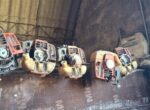 martillos neumáticos, 3 martillos hidráulicos de gran potencia, cajón con pernos,