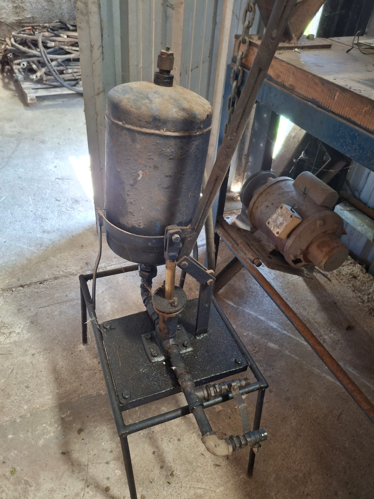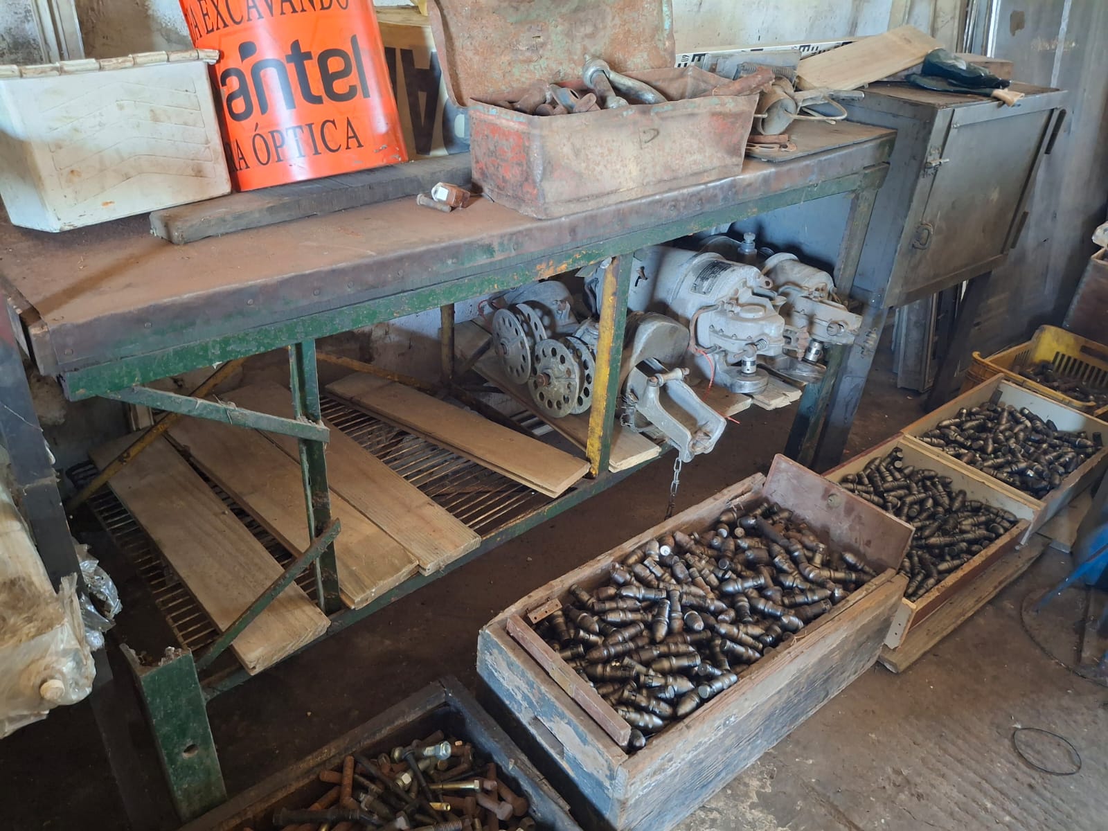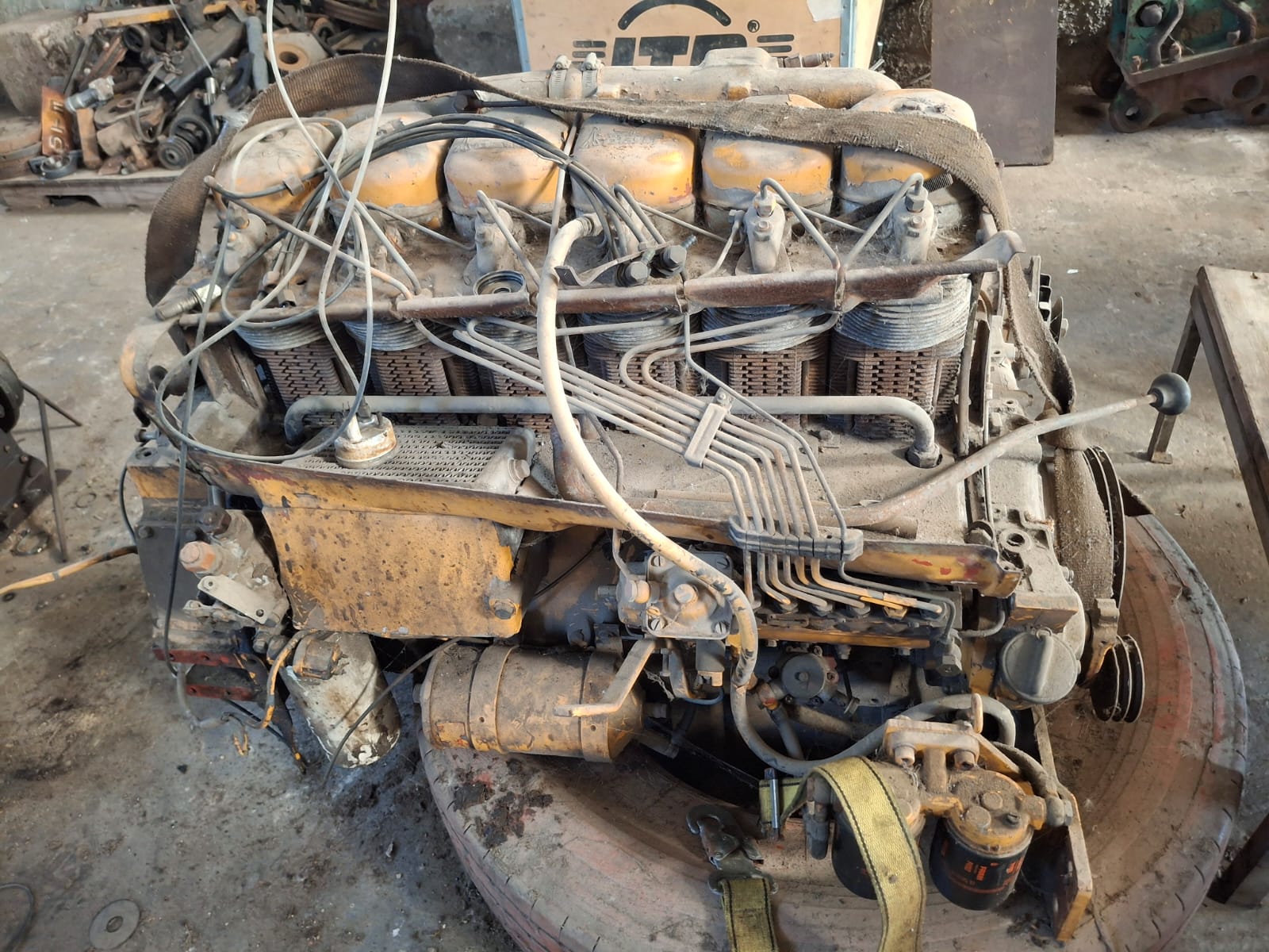 inyección pluma para taller, prensa hidráulica, varios motores diesel, mesa de hierro