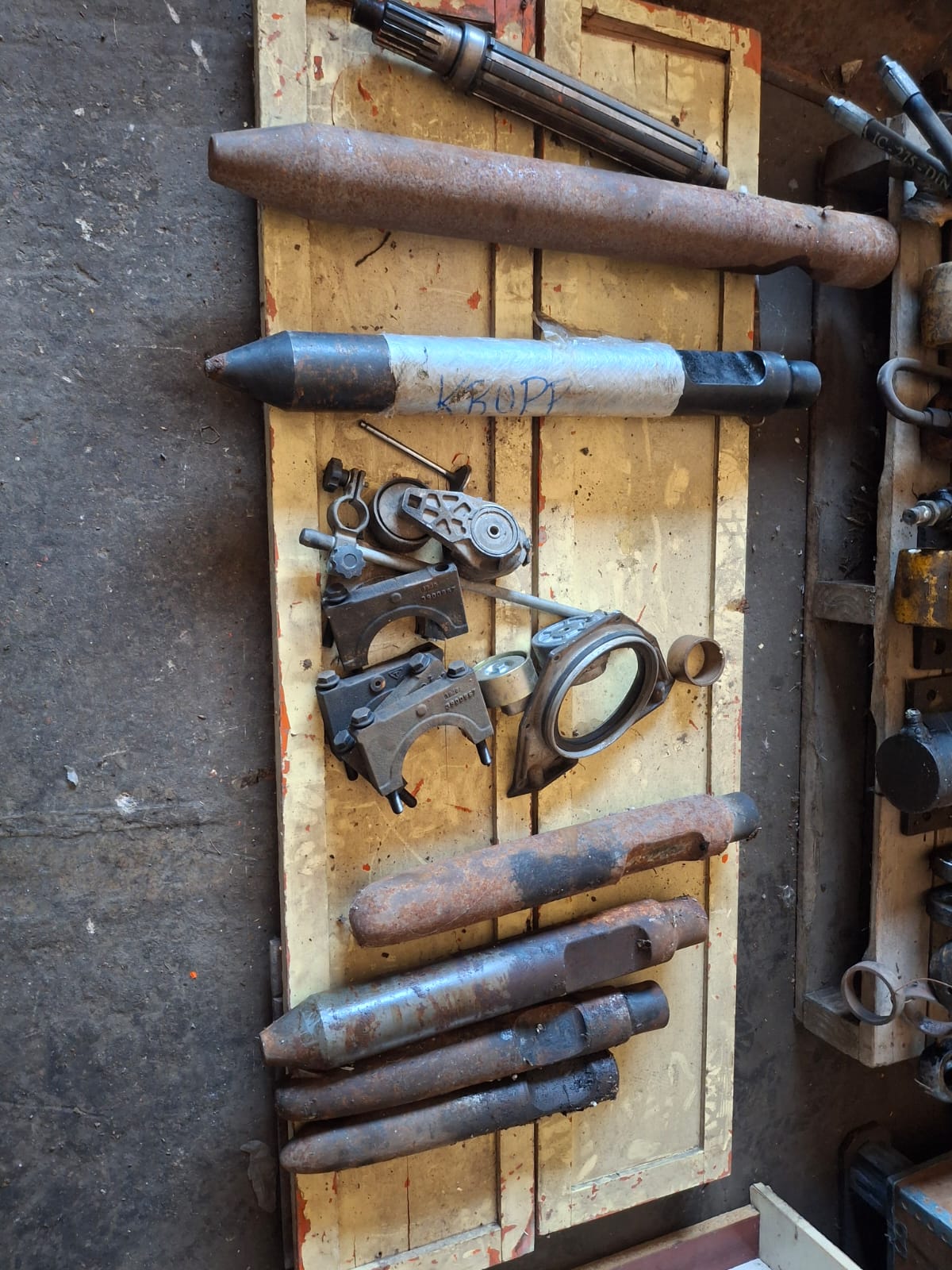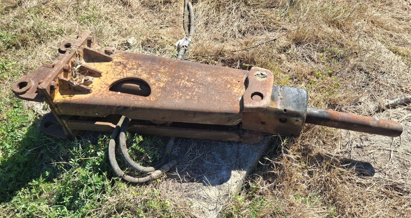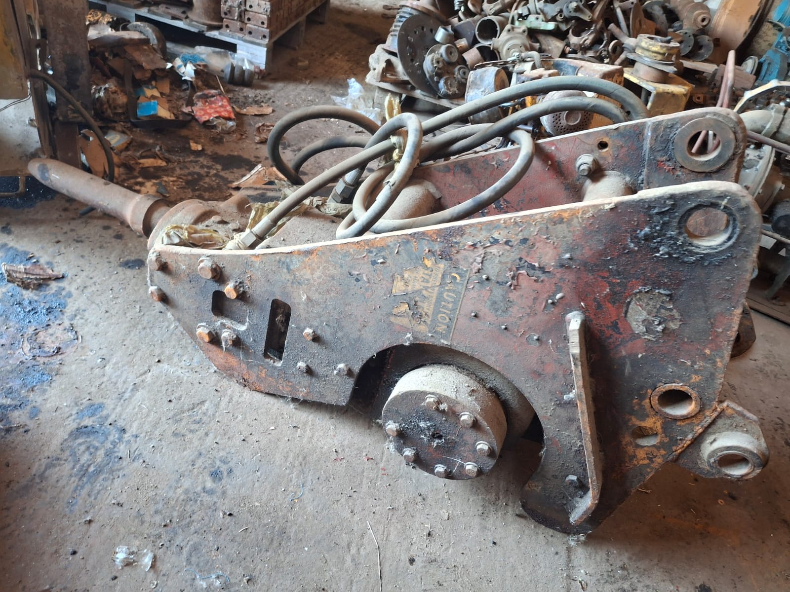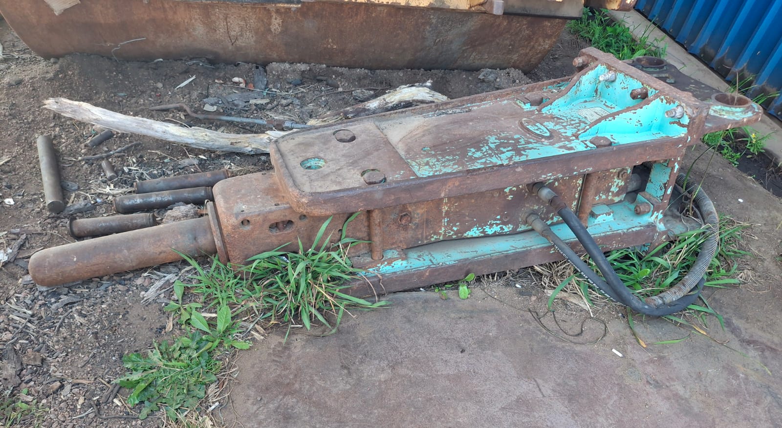 martillos neumáticos, 3 martillos hidráulicos de gran potencia, cajón con pernos,
