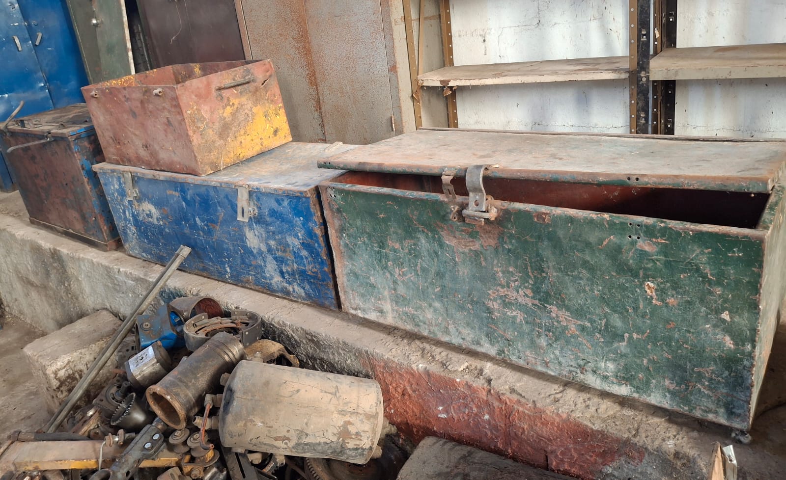 para taller, varios locker metálicos, ficheros metálicos, estanterías, lotes de vigas de