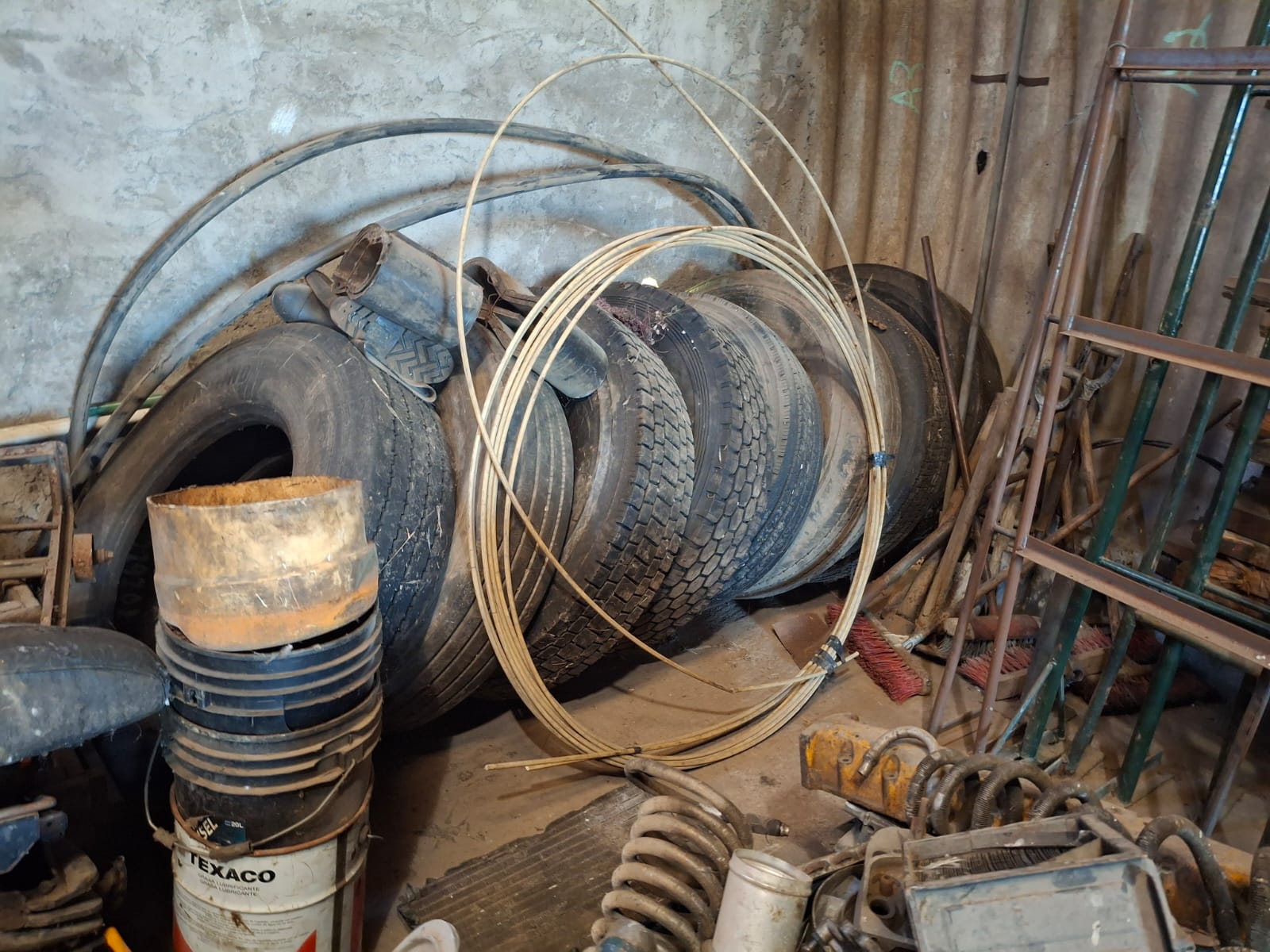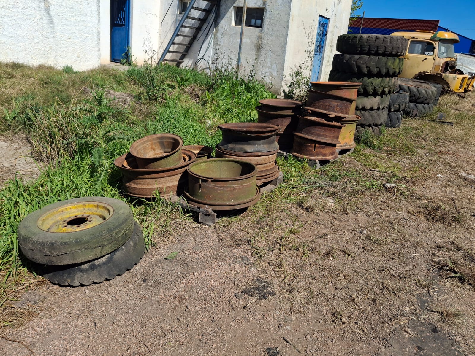 vehículos y tractor, lote de cubiertas para camión usadas, escalera de aluminio