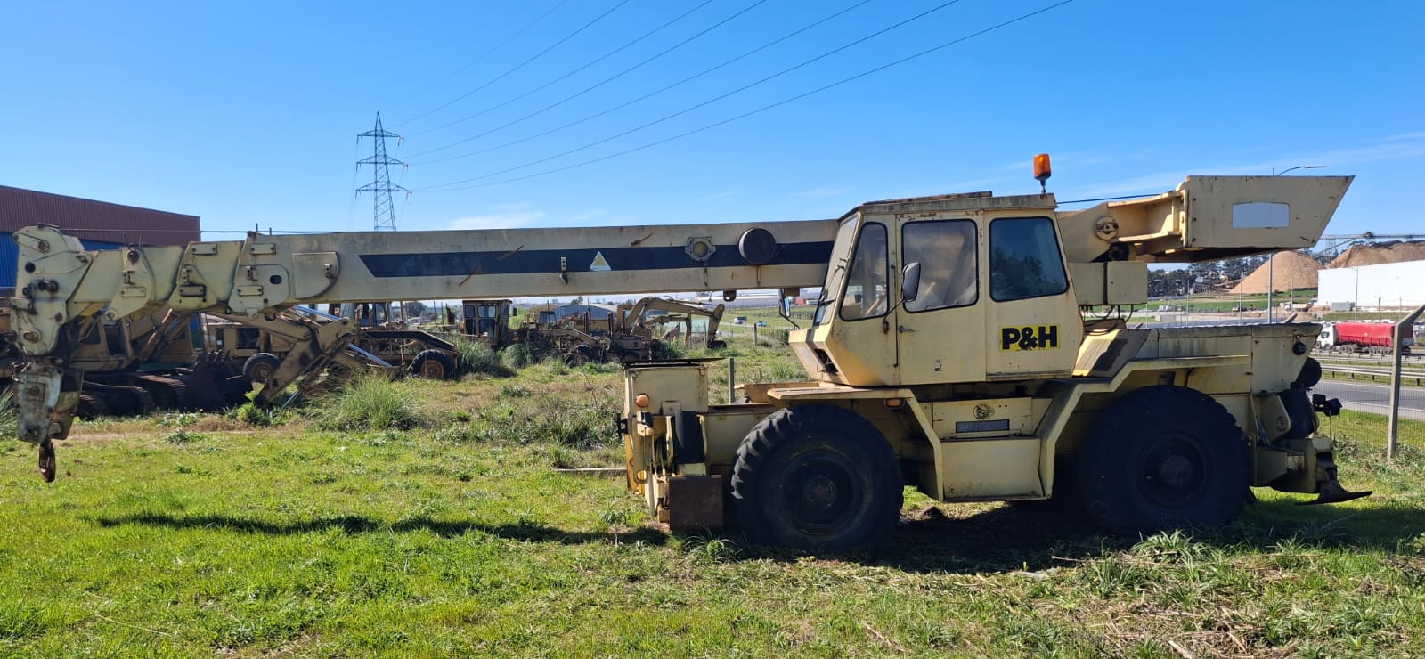 – MAQUINARIA VIAL: Grúa autopropulzada, P&H 25 TON ,Excavadora Caterpillar