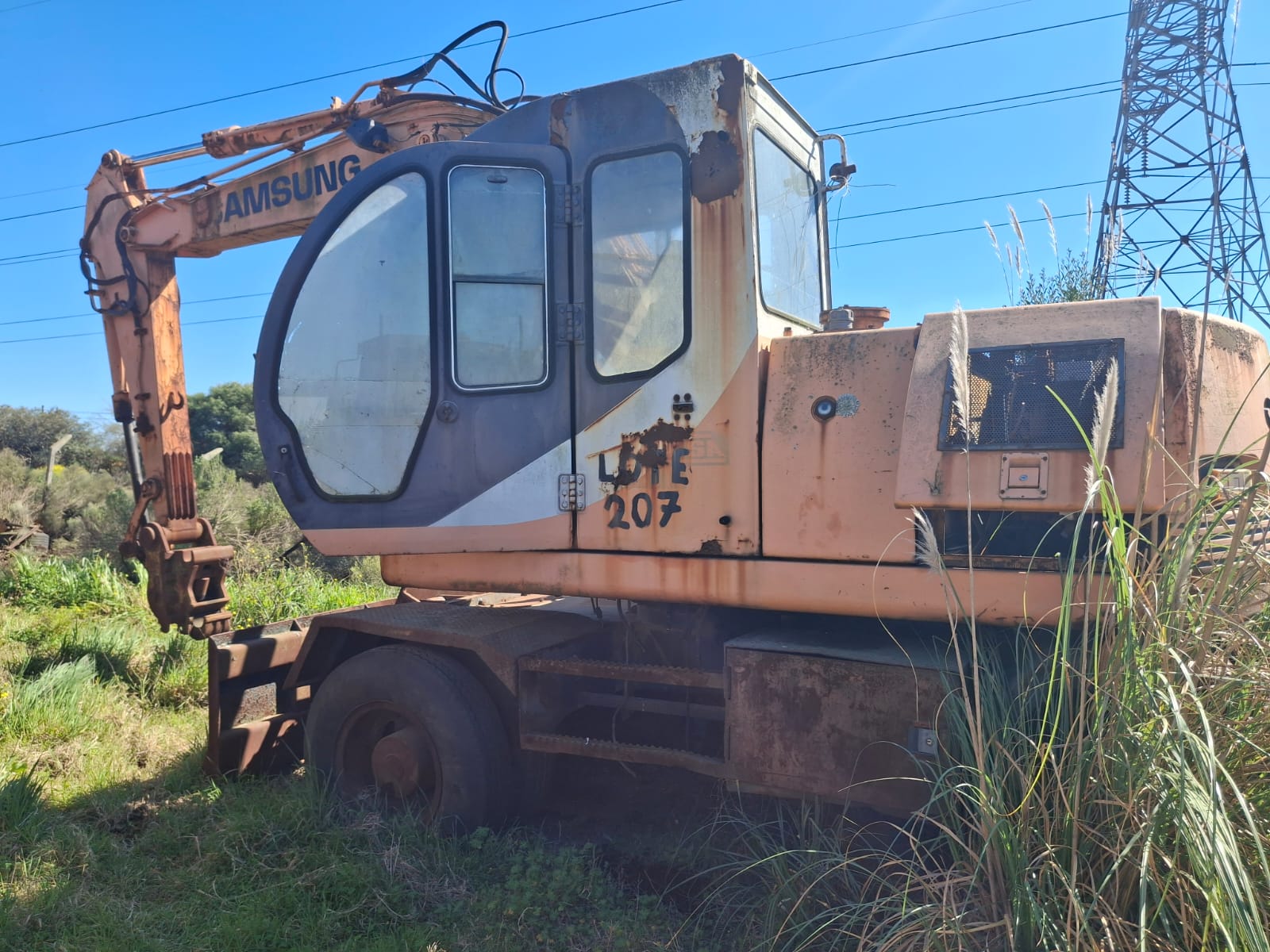 320 LN, 7 Excavadoras :Caterpillar 215 y 219 DLC, Excavadora Samsung 8 ruedas,