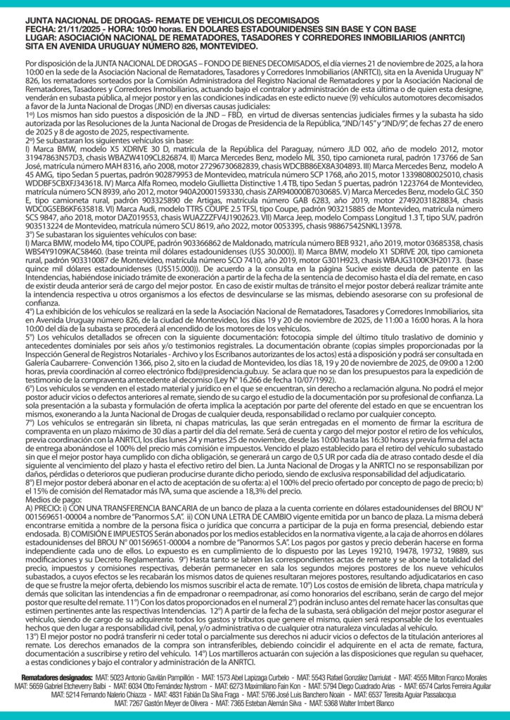 En A.N.R.T.C.I. – AV. URUGUAY 826 – MONTEVIDEO
