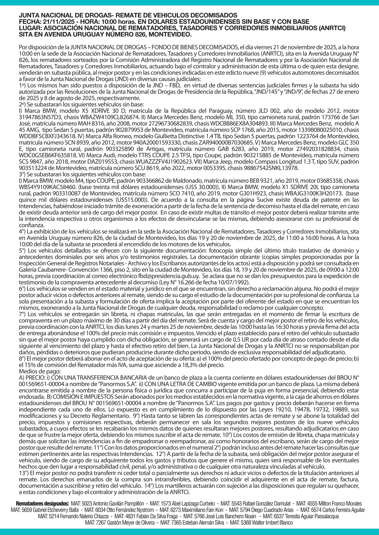 En A.N.R.T.C.I. – AV. URUGUAY 826 – MONTEVIDEO