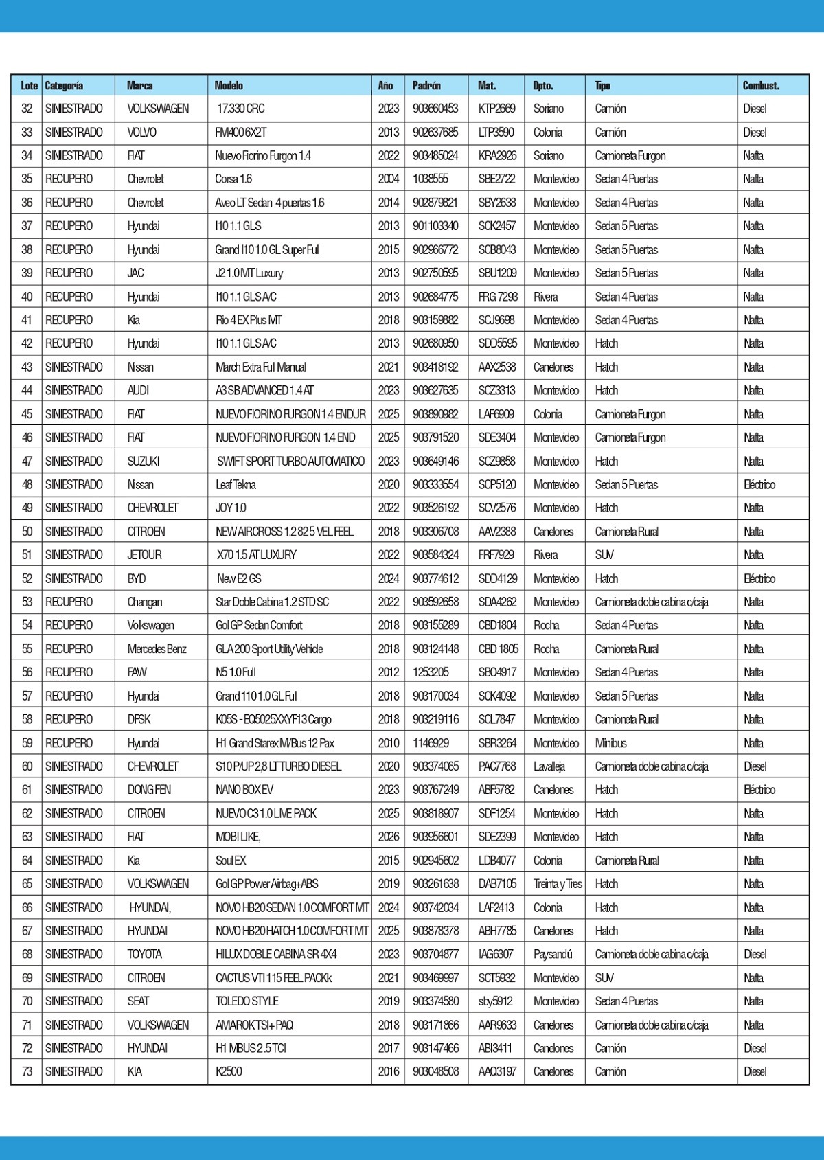 VEHÍCULOS, REPUESTOS, RESTOS